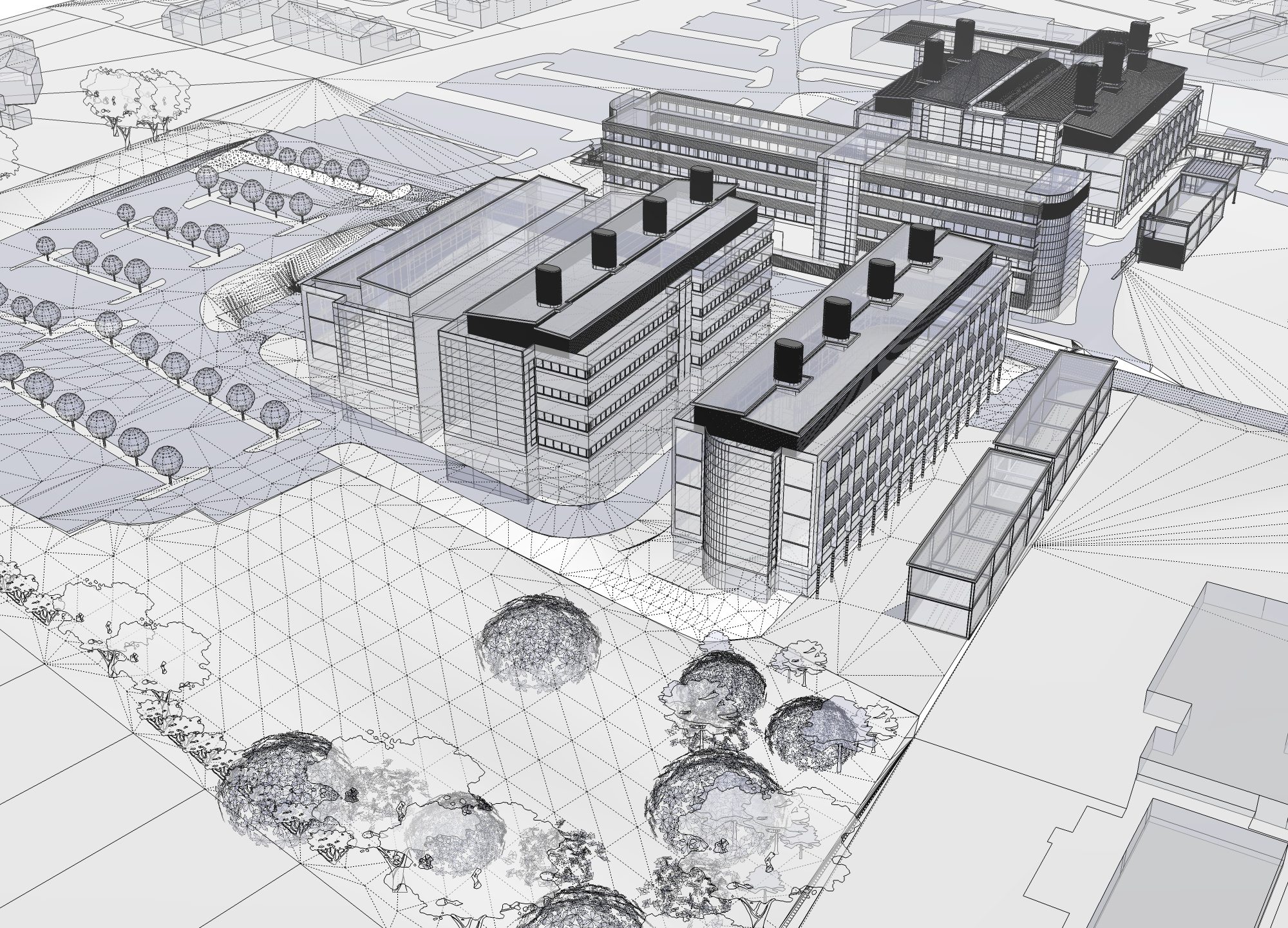 Feilden+Mawson have developed a Masterplan for 20,400m2 of class B1 (b) accommodation on a 2.5Ha site, on adjoining land to the North of the ICR's Sutton campus, which has achieved planning consent. The development is designed to allow for phased development to meet funding and minimise disruption and impact on the surrounding area.
