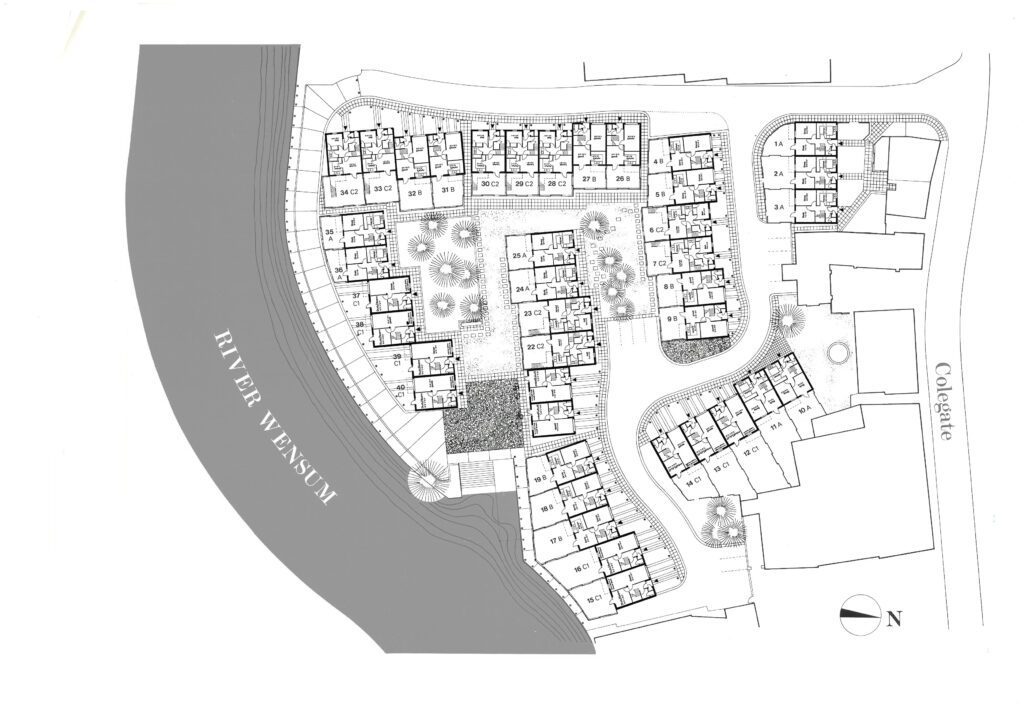 Luckhurst was ‘trained as a brutalist’ at the Bartlett in the late 1950s and came to Norwich and Feilden+Mawson from his first proper job at Scott Brownrigg Turner in London. In 1963 he led the fast-track design and construction of the UEA ‘student village’ at Fifers Lane, home to the new university’s first cohort of students while Denys Lasdun’s teaching wall and ziggurats took shape on the main campus. He then worked on several laboratory projects including the John Innes Institute, on what is now Norwich Research Park. When the Friars Quay project came his way in 1971 he was pleased, but surprised, not having previously done a substantial residential project…and then, understandably, he prevaricated. ‘Some early sketches were based on the UEA ziggurats’, Luckhurst confesses, ‘but it didn’t really work’. The date of the first client meeting loomed and (the story goes) the night before, the basic layout of Friars Quay came to him in a dream. He woke up, produced the sketch, and the meeting went really well. ‘But what of the steeply pitched roofs, the stepped plan, and the different coloured bricks?’, I asked.